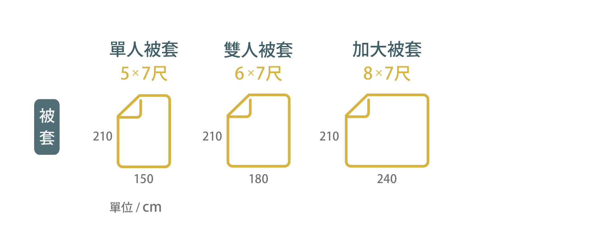 - 部分【單人】尺寸的【被套尺寸】略有不同,詳情請參考各商品賣場下方的尺寸說明。