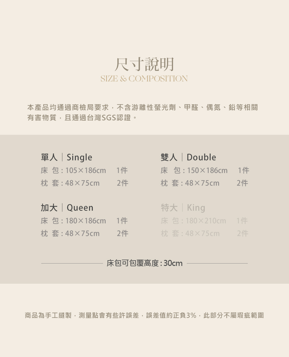 內含:床包×1、工藝枕套×2
