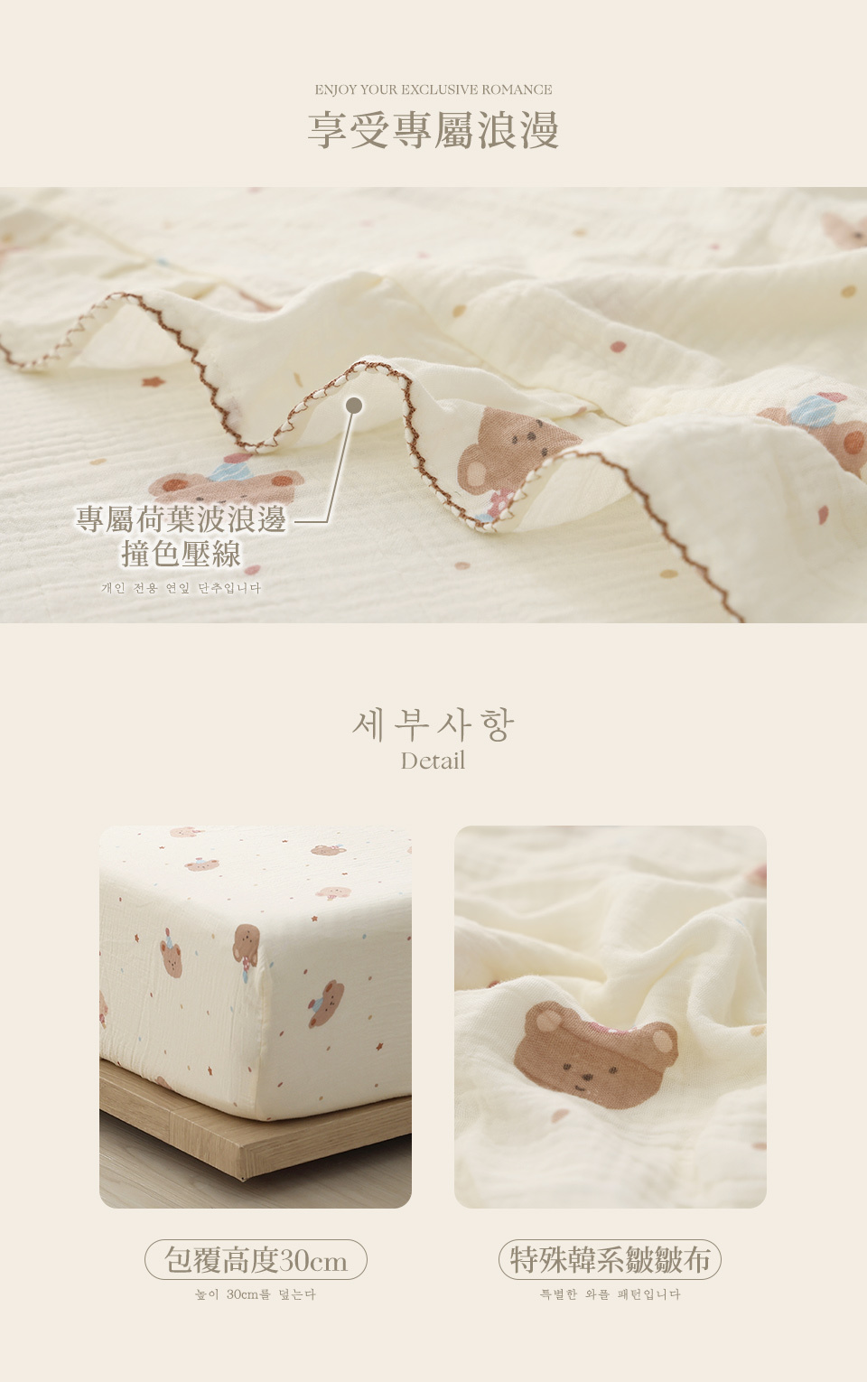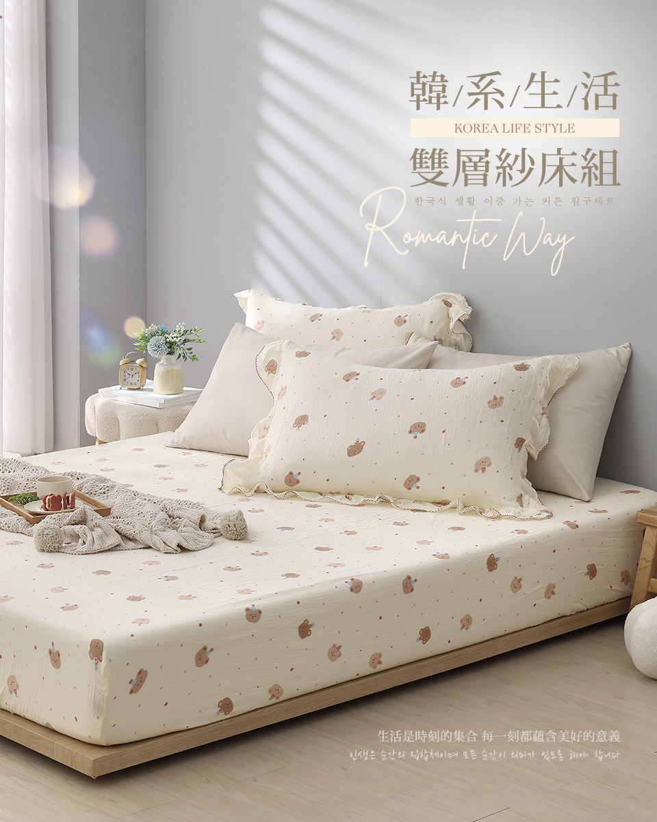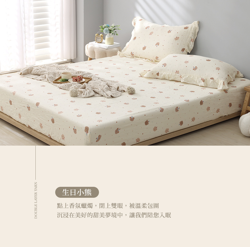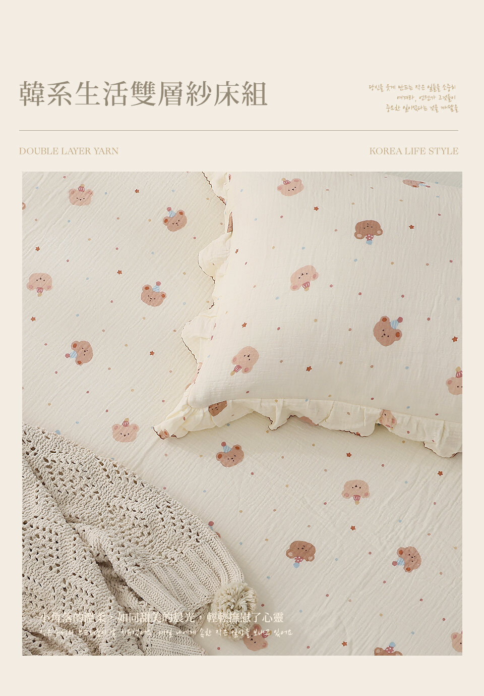 (單人/雙人/加大) / 韓系波浪邊純棉雙層紗床包組 / 生日小熊 / DON HOME