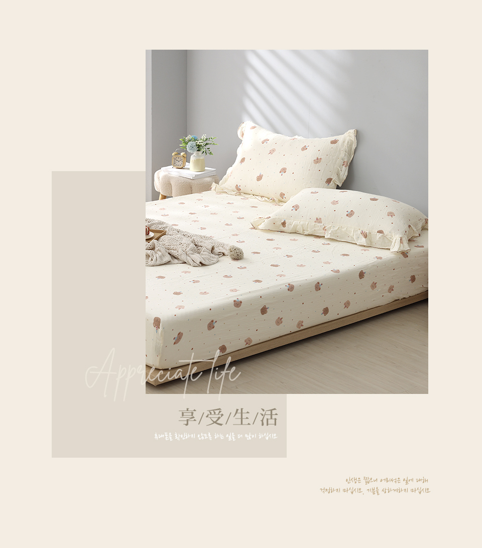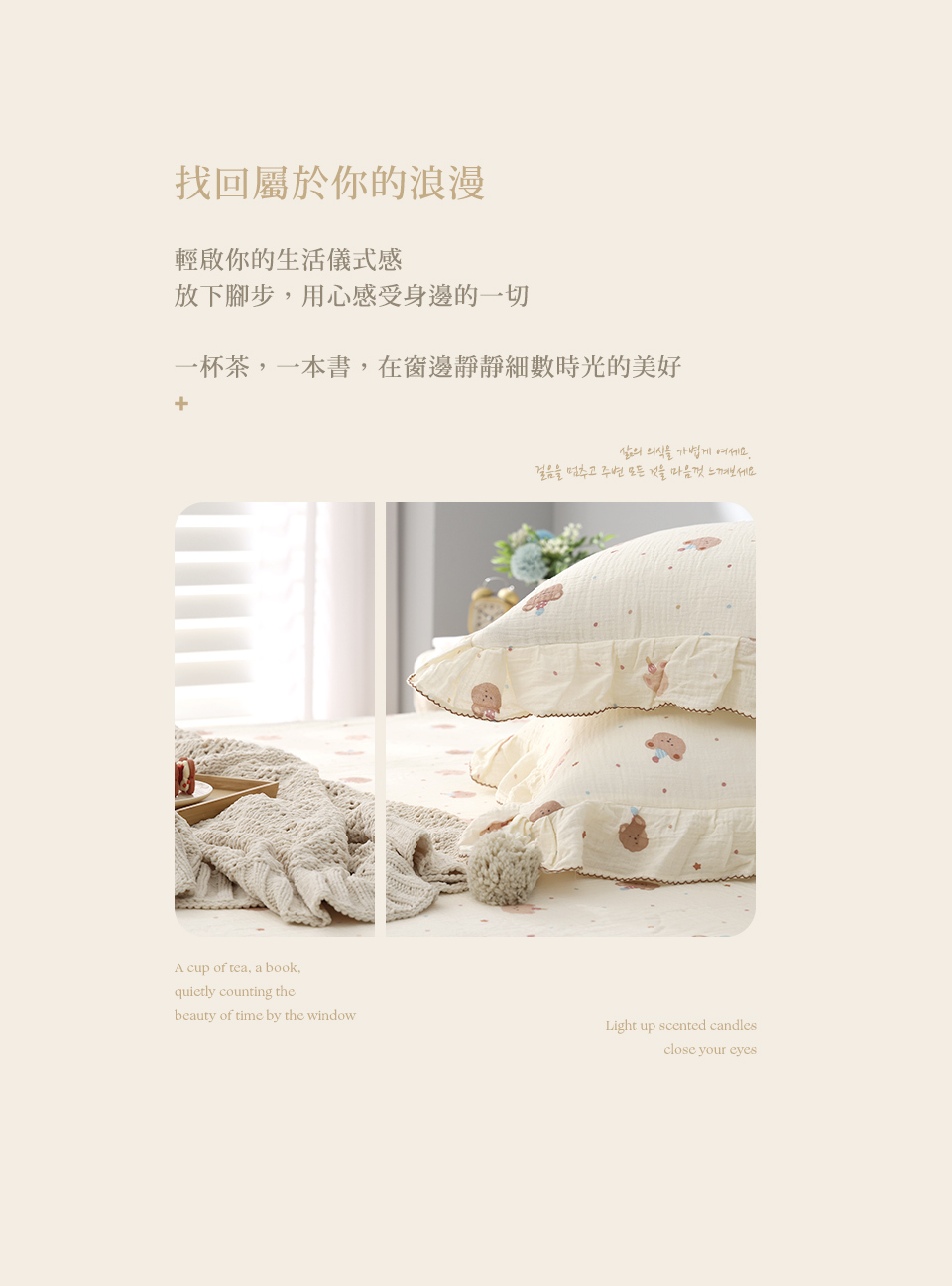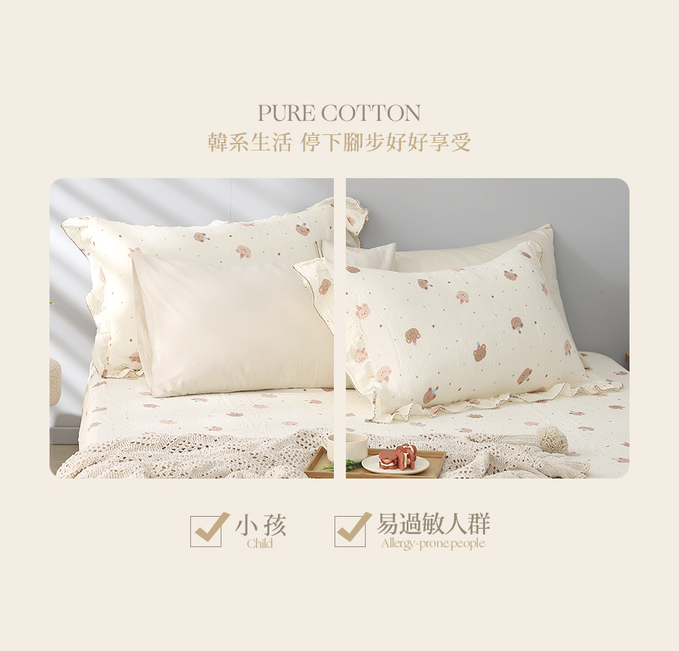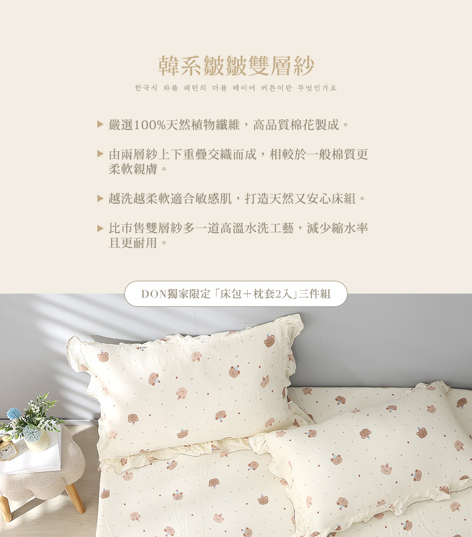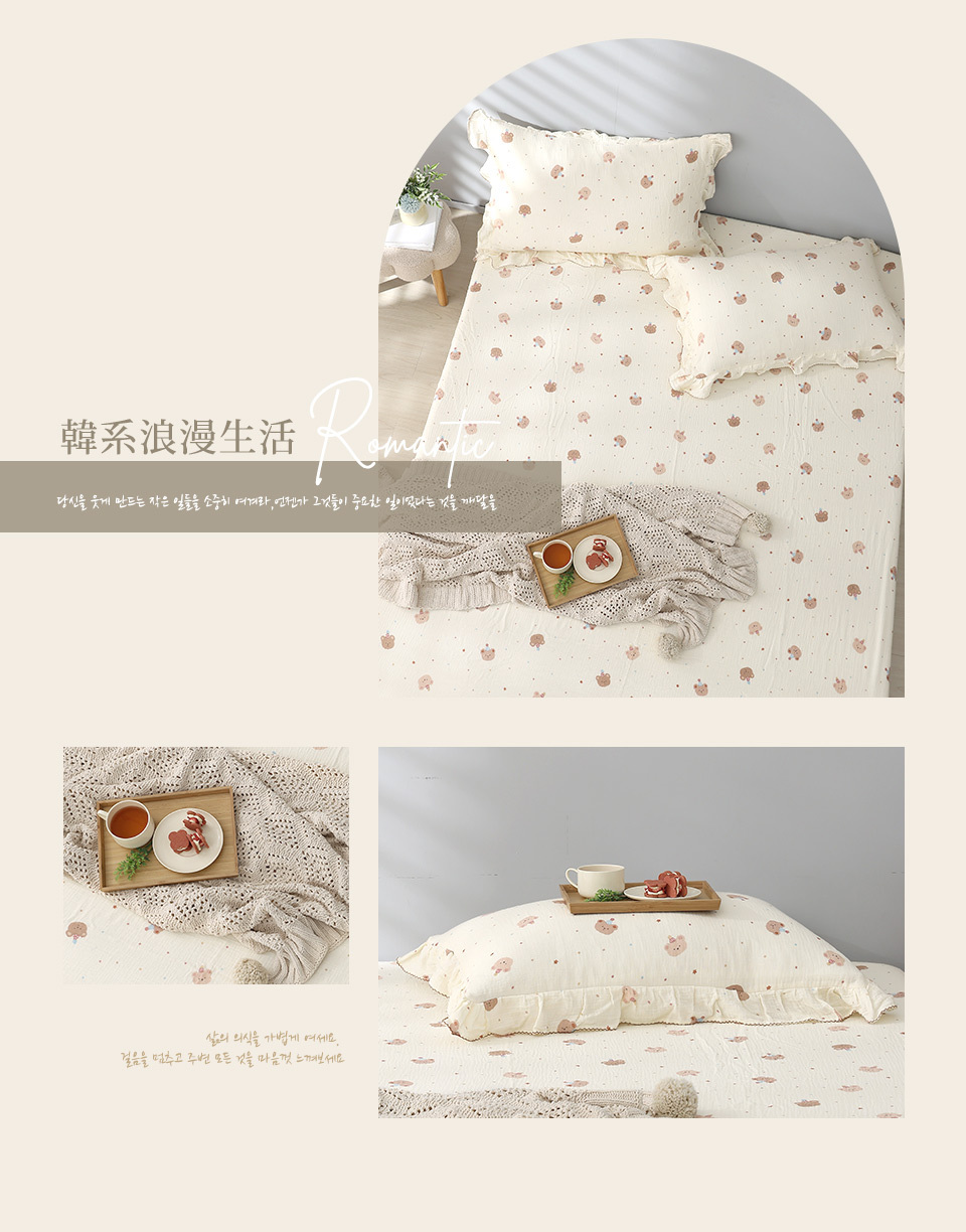 (單人/雙人/加大) / 韓系波浪邊純棉雙層紗床包組 / 生日小熊 / DON HOME