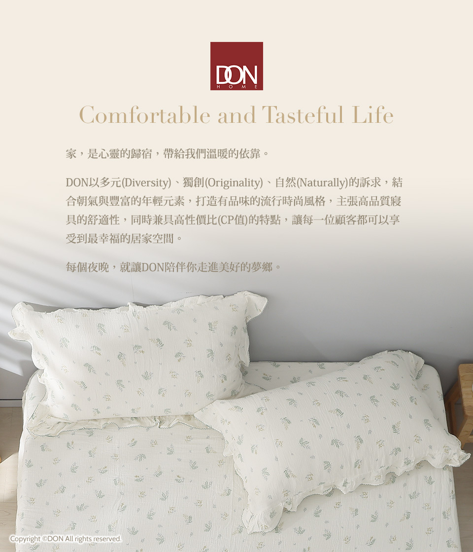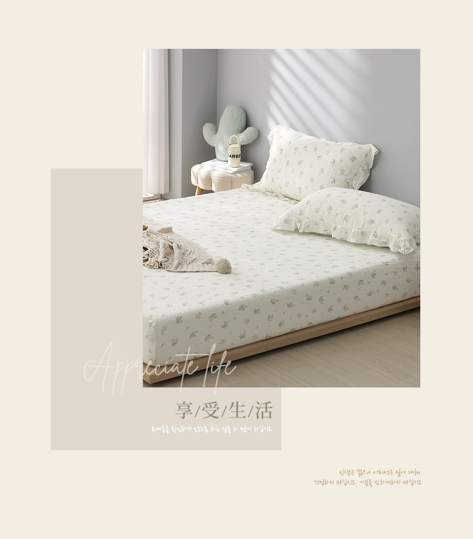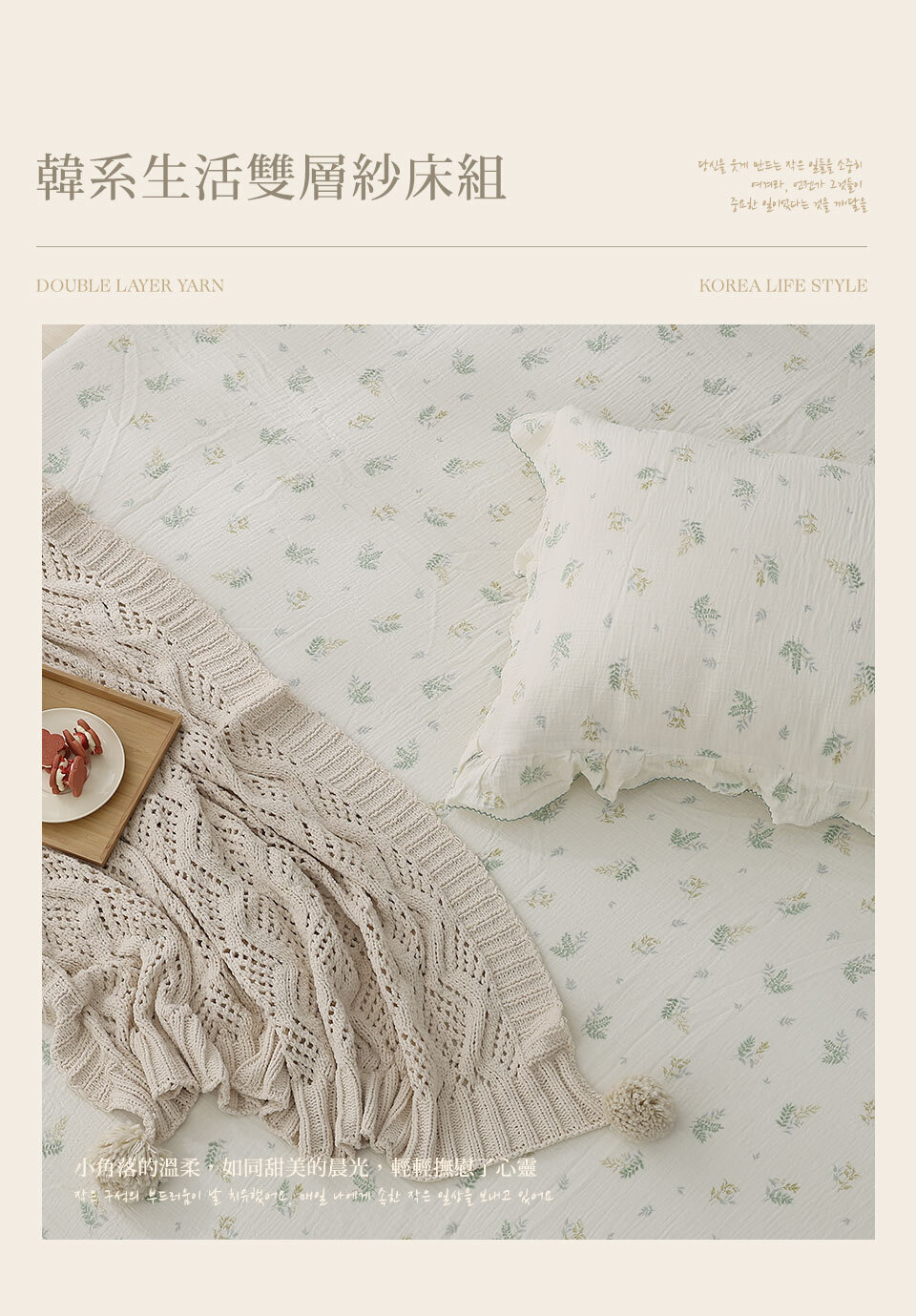 (單人/雙人/加大) / 韓系波浪邊純棉雙層紗床包組 / 綠意靜謐 / DON HOME