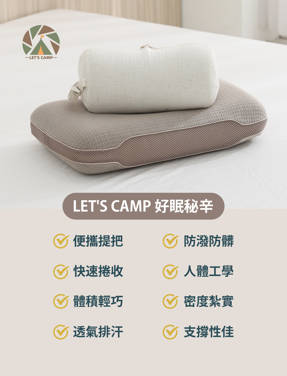 一手便攜露營枕,體積輕巧隨眠隨行
