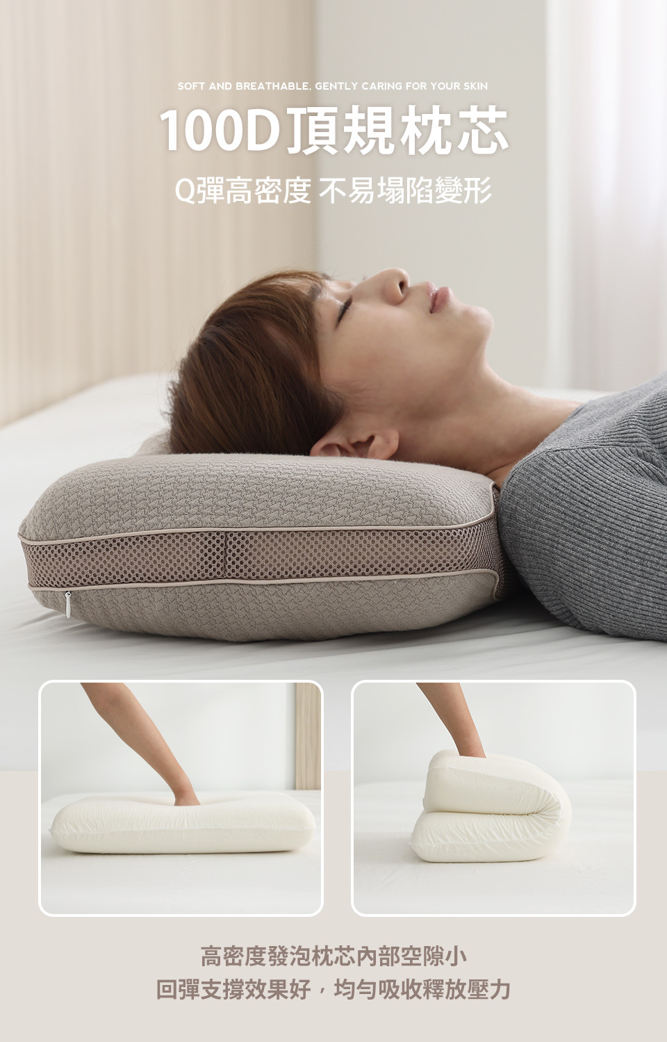 100D高密度記憶棉支撐區,全方位支撐