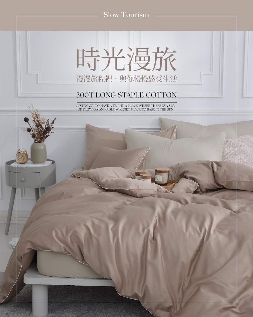 (單人/雙人/加大) / 長絨棉兩用被床包組 / 栗茶褐x橡樹米 / 時光漫旅 / 網路限定 / DON HOME