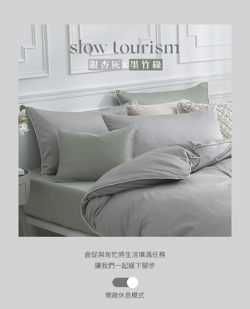 (單人/雙人/加大) / 長絨棉兩用被床包組 / 銀杏灰x墨竹綠 / 時光漫旅 / 網路限定 / DON HOME