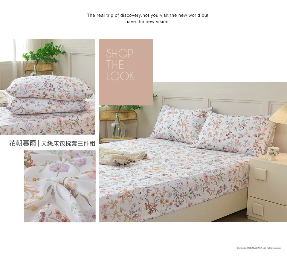 【團購】(雙人/加大) 100%天絲™床包枕套三件組 / 花朝暮雨 / HOYACASA