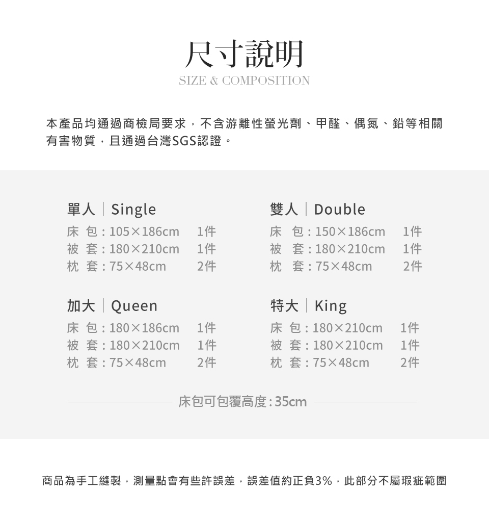 產地:兩用被套、床包 – 中國;枕套 – 台灣