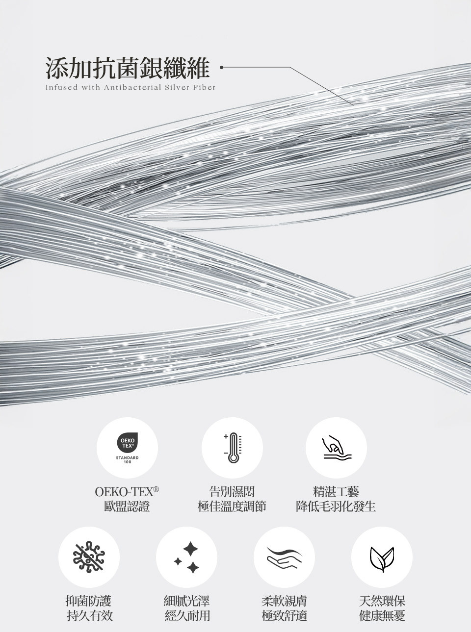 材質– 填充物:54℅萊賽爾、46%聚酯纖維(添加薇雅絲抗菌纖維)