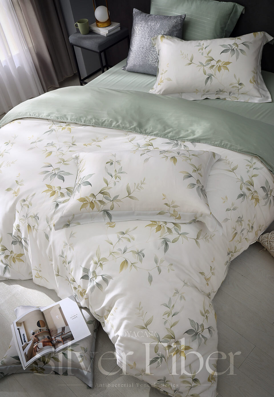 【團購】(雙人/加大/特大) / 銀纖維抗菌天絲™兩用被床包組 / 葉語紛飛 / HOYACASA