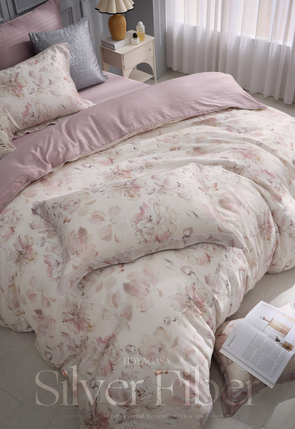 【團購】(雙人/加大/特大) / 銀纖維抗菌天絲™兩用被床包組 / 花郁 / HOYACASA