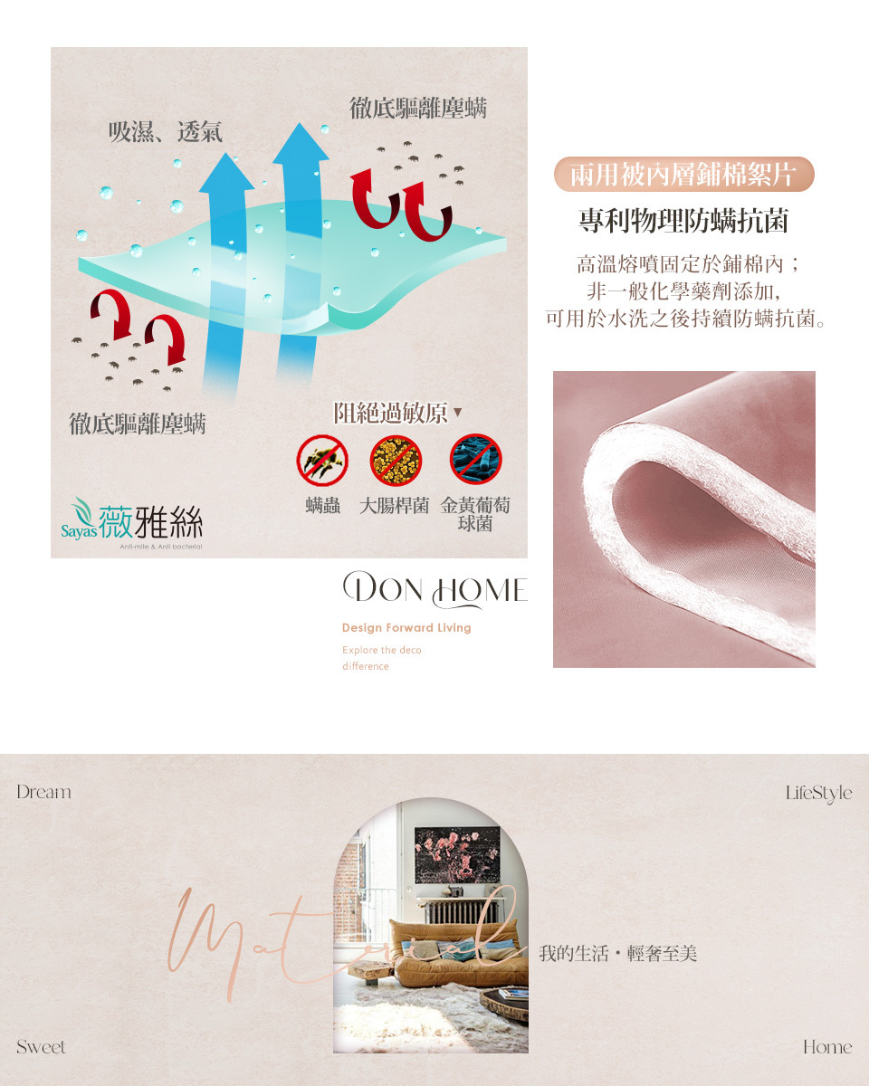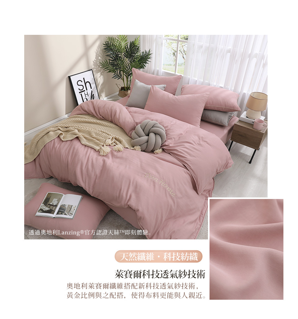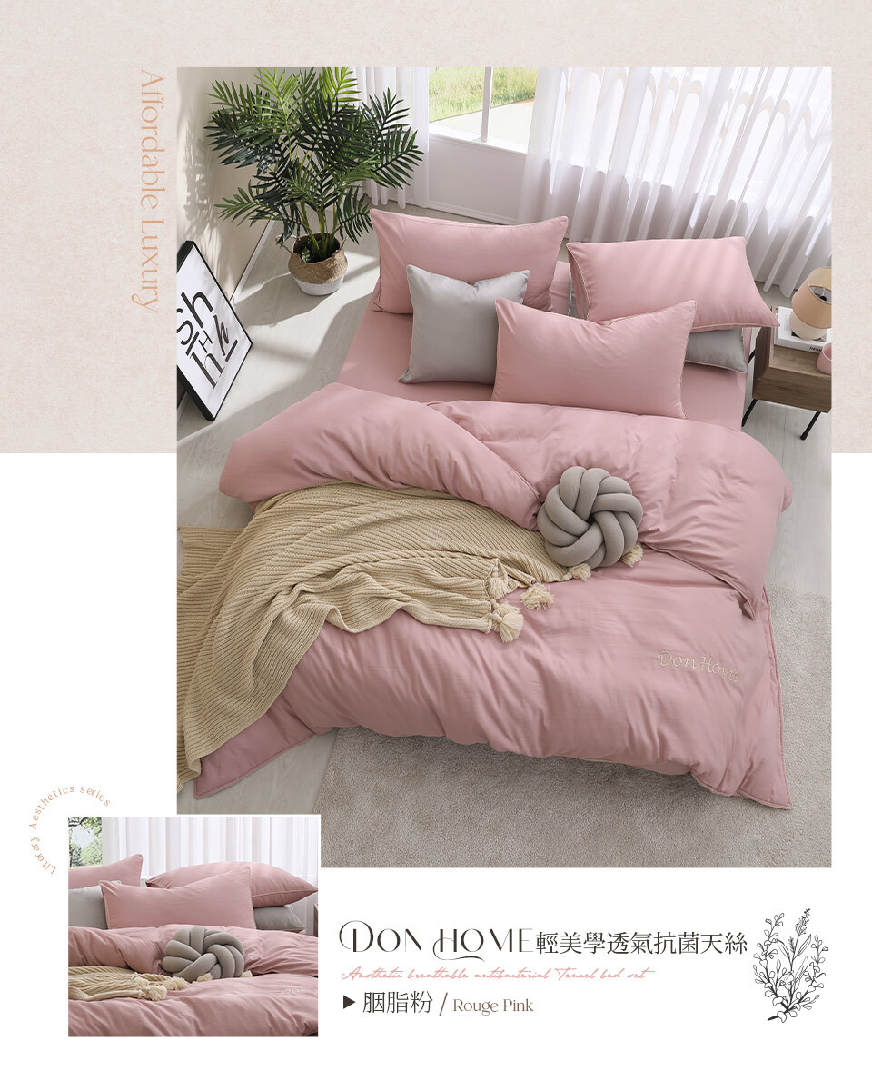 (單人/雙人/加大) / 輕美學抗菌吸濕排汗天絲兩用被床包組 / 胭脂粉 / DON HOME