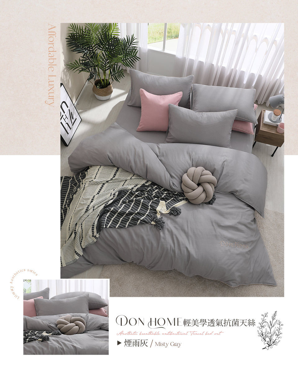(單人/雙人/加大) / 輕美學抗菌吸濕排汗天絲兩用被床包組 / 煙雨灰 / DON HOME