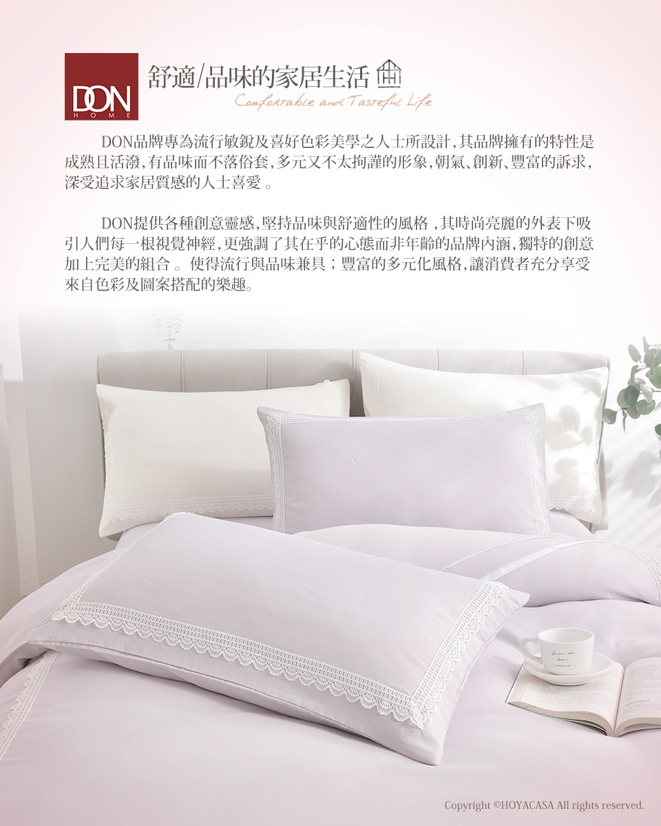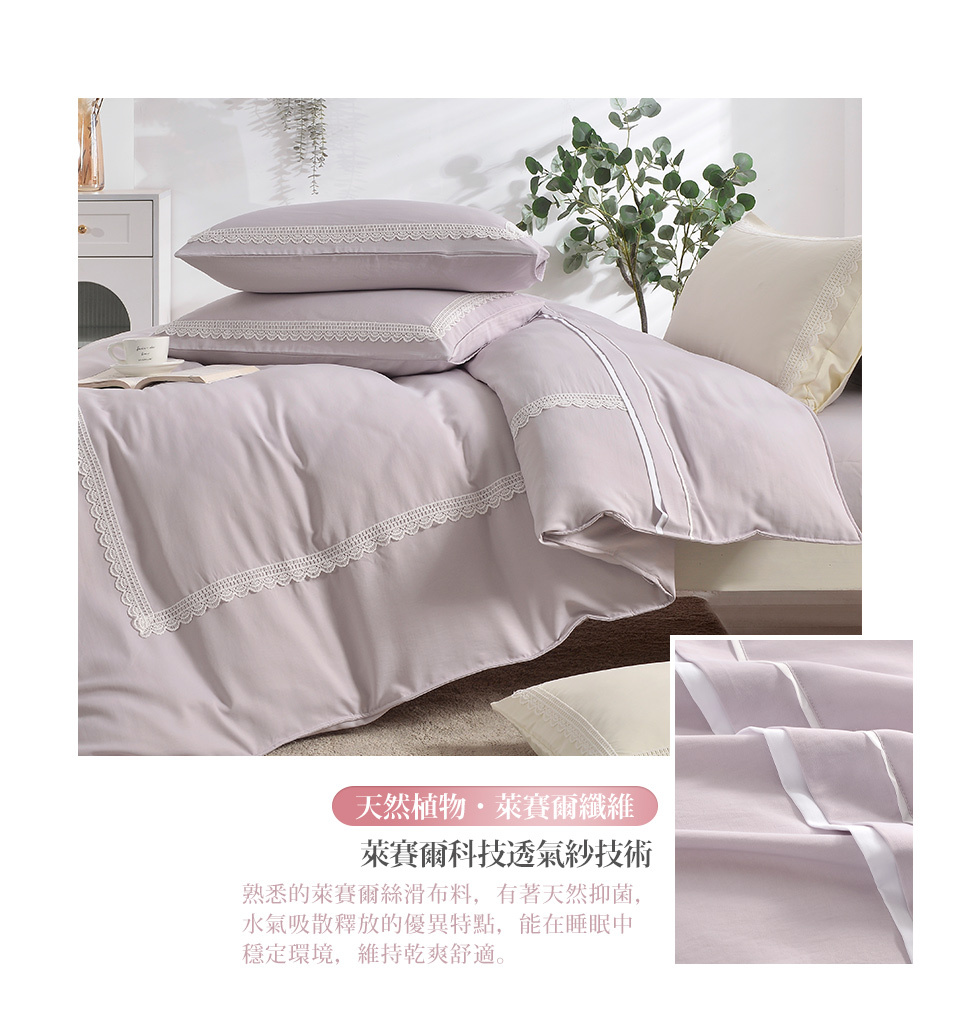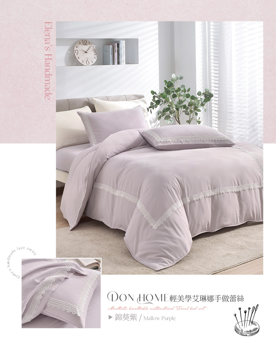 (雙人/加大) / 艾琳娜手作蕾絲吸濕排汗萊賽爾兩用被床包組 / 錦葵紫 / DON HOME