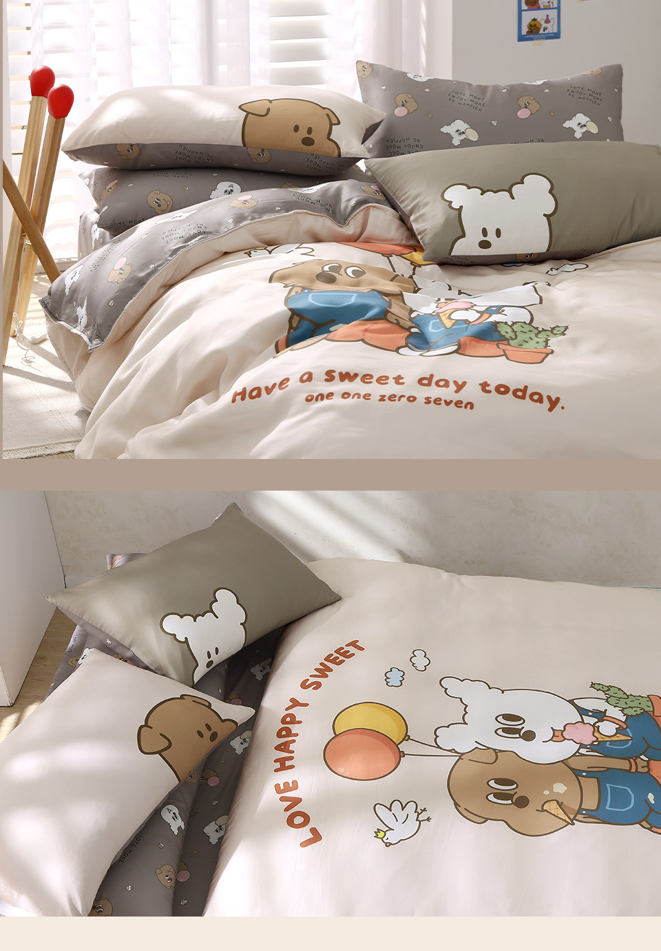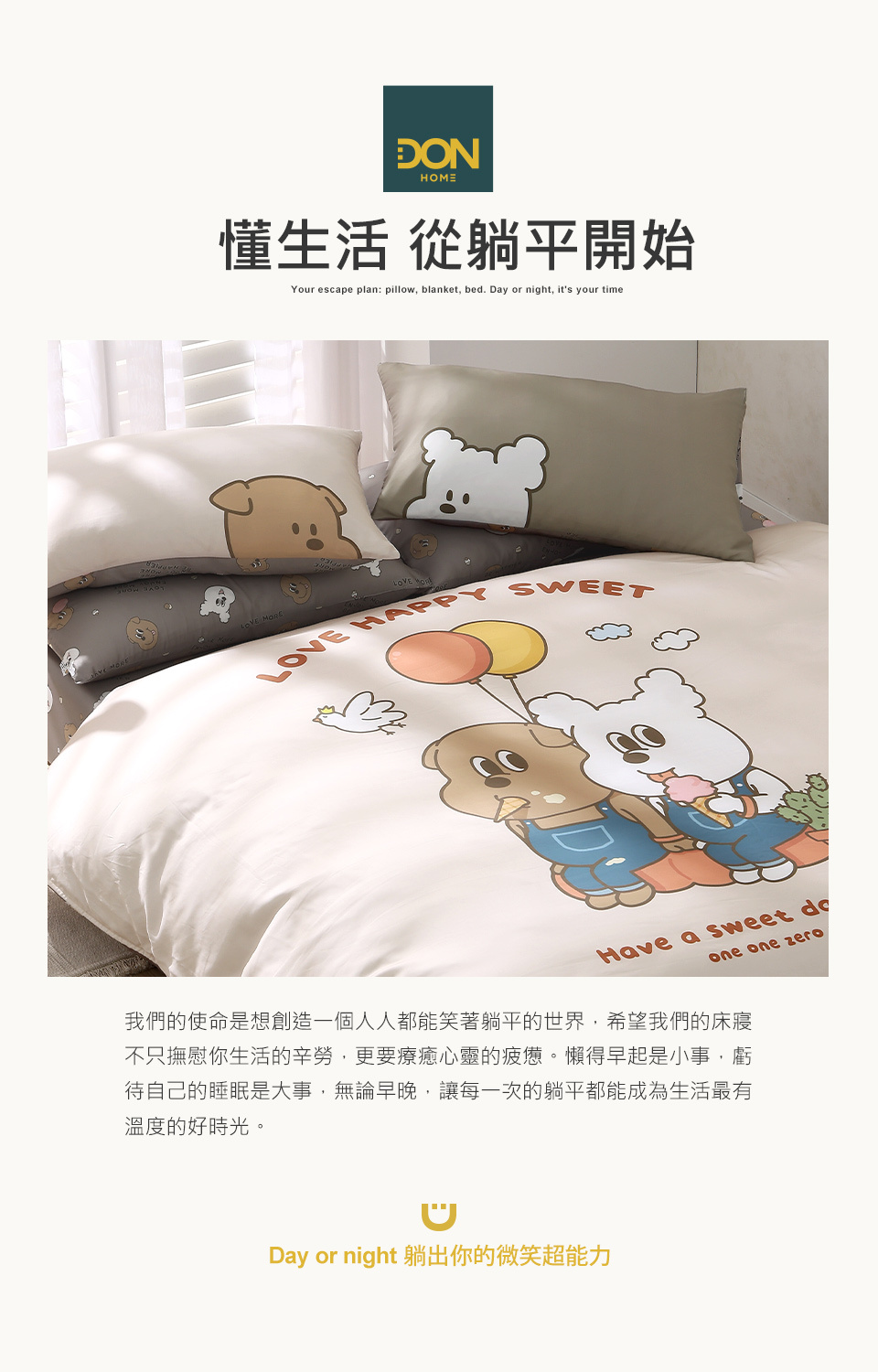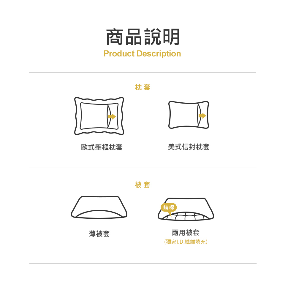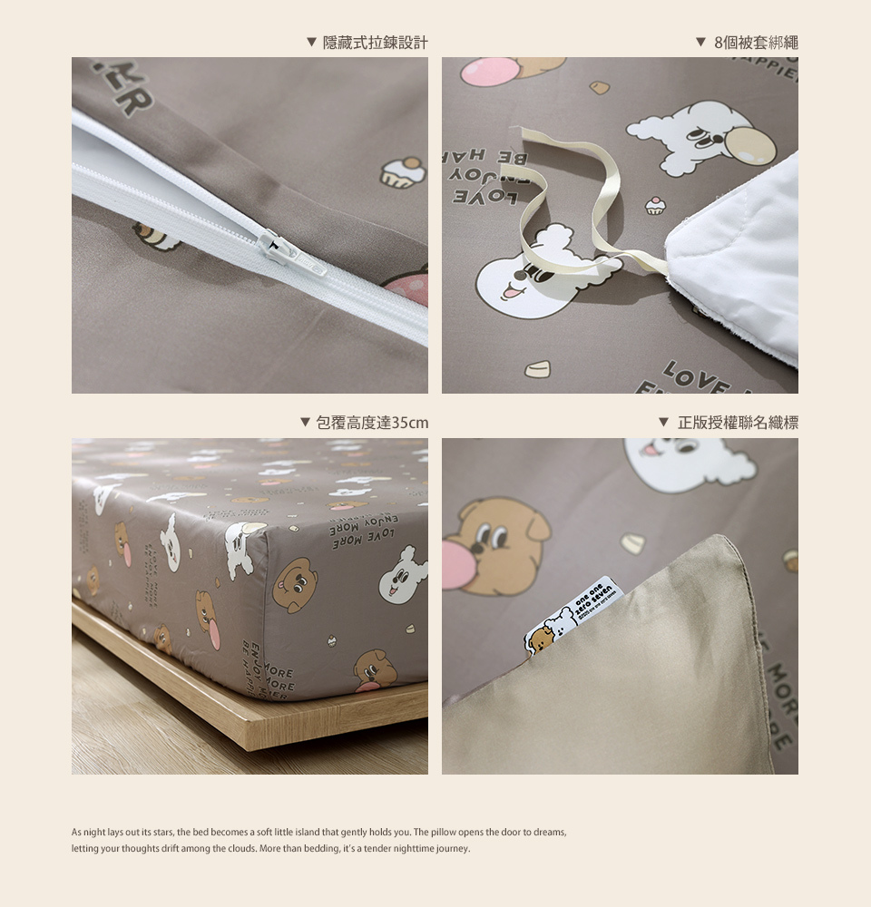 內含:床包x1、兩用被套x1、信封枕套x2