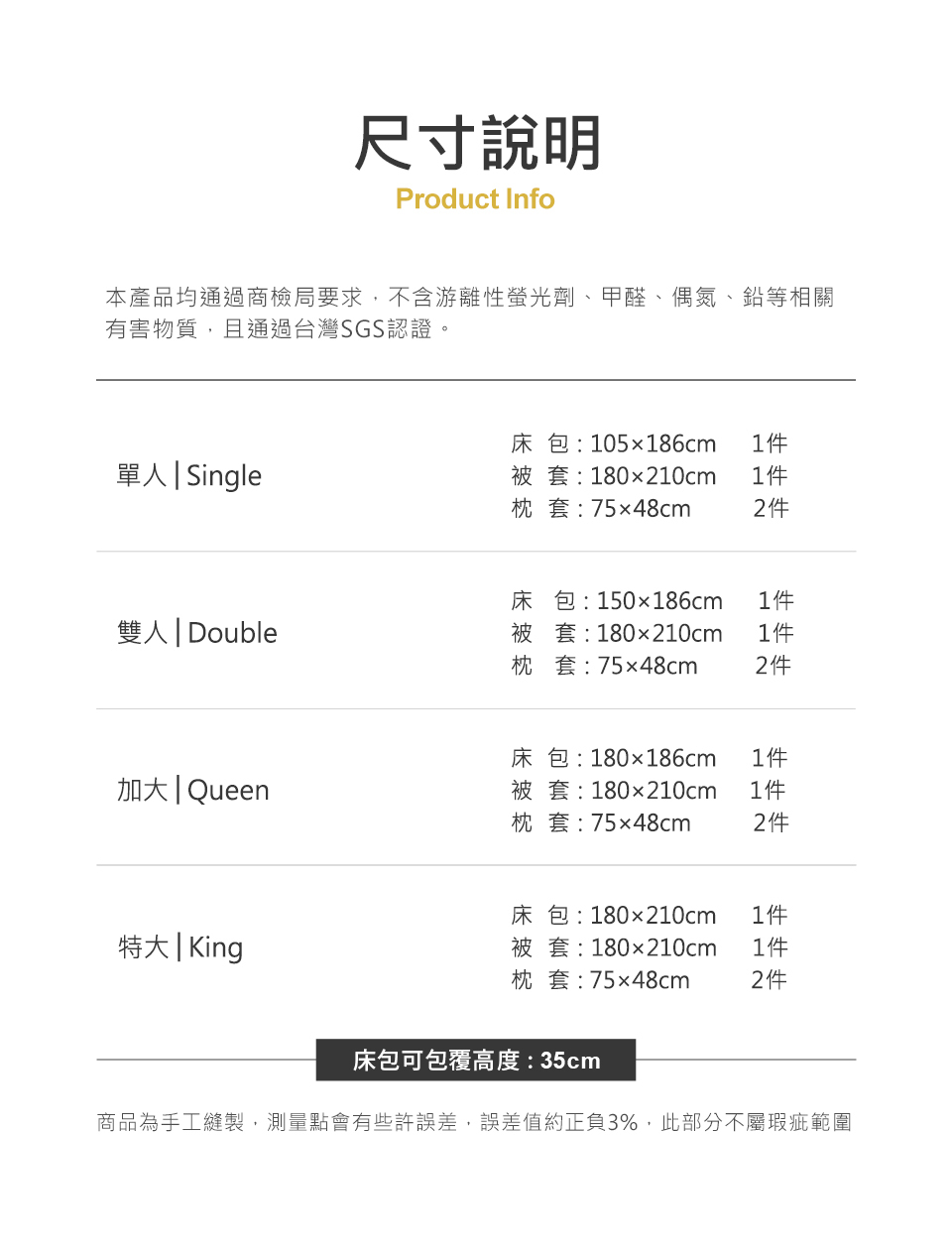 產地:兩用被套 – 中國;床包枕套 – 台灣